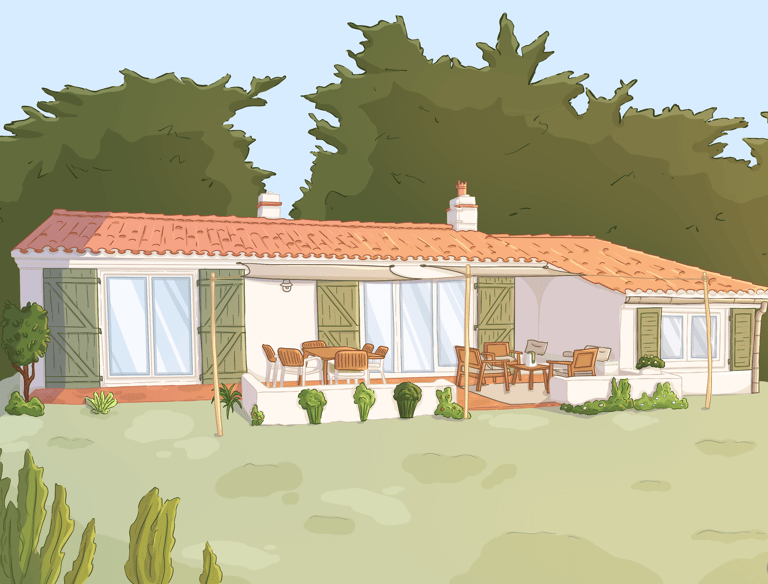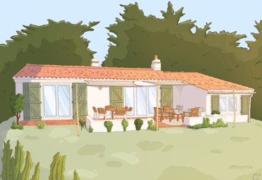 Je réalise des illustrations sur mesure à partir de vos photos, que ce soit de votre maison de face ou en vue 3/4, pour capturer l’essence et les détails uniques de votre lieu.